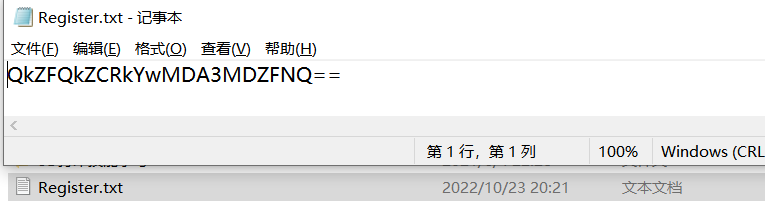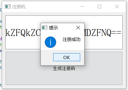 编译运行后,当我们点击生成注册码时,则会显示硬件信息通过Base64编码的结果,如下所示: