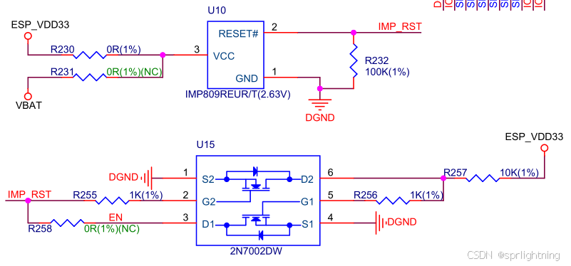 如果用的是IMP809R,其复位电压是2.63V +/- 2.5%,这很合理,也接近ESP32的brownout阈值;但是如果用的是IMP809T,那他的复位电压就是3.08V +/- 2.5%,那这就太巧了,3.08 * (1 + 2.5%) = 3.157V,我的EN在phy_init期间就在3.16-3.19之间摆动,合理,说明我手里这个乐鑫的LyratV43极有可能使用了T系列低压复位芯片。。。