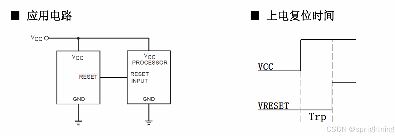 先看看低压复位芯片的应用,可以看到应用电路中低压复位芯片输出是直接控制mcu的EN,可以用来实现上电自动复位,比如来电自启动之类。