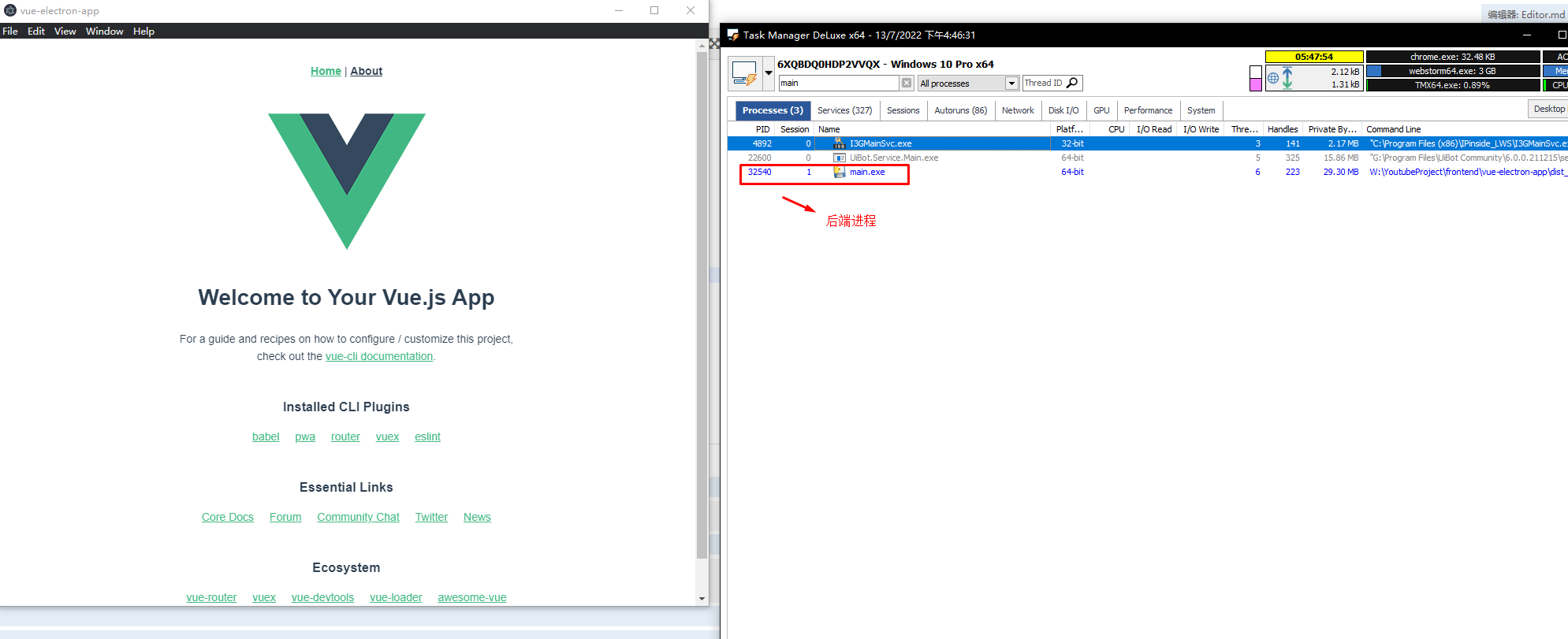 最终达到的效果就是启动前端exe时,后端进程同时打开,关闭前端exe时,后端exe也同时关闭