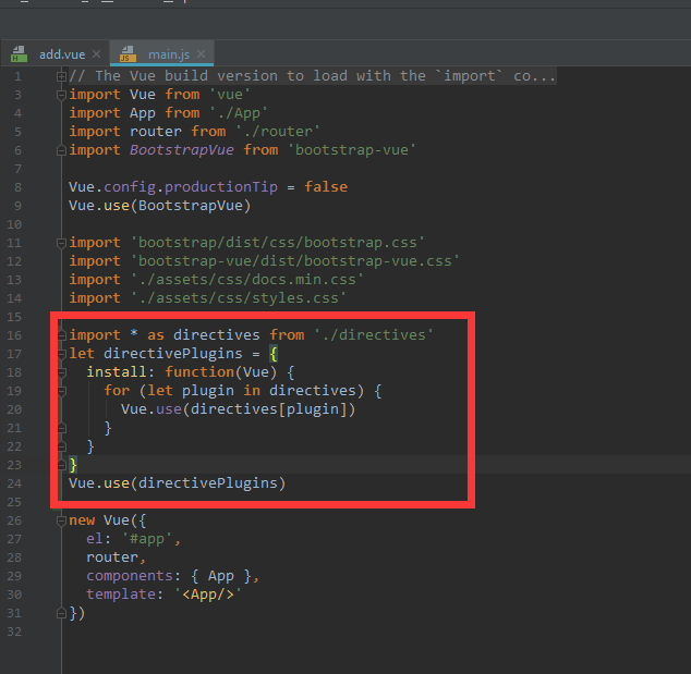 10 registerDirectives(Vue, directives)