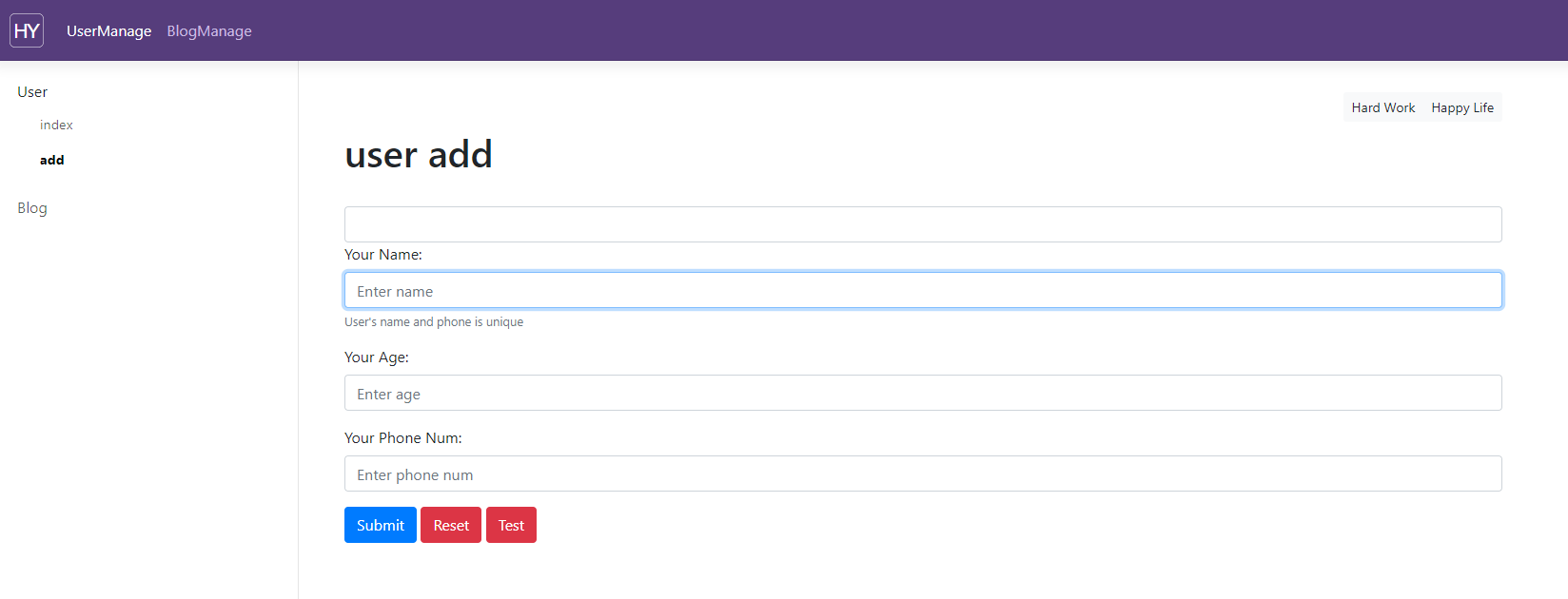 首先,我们做一个简单的Form添加页面,几个简单的用户名、年龄等基本元素。代码如下: