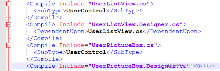 - UserListView是我刚刚改好的,是正常的,UserPictureBox是还没有改的,是有问题的,两者对比下,就可以改了。注意:一个是设计器文件,一个是资源文件,两个地方都要改。改完保存,再打开项目就好了。