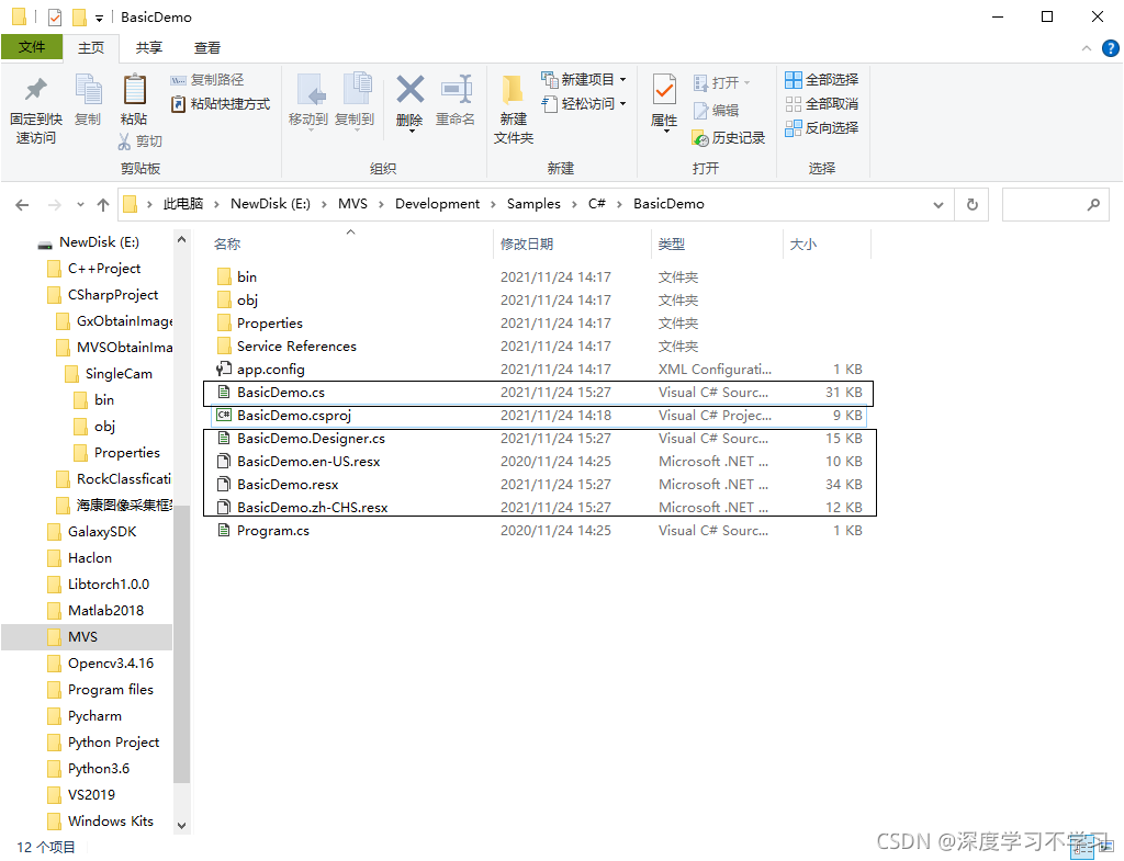 2.将原来项目文件夹中,除了app.config、Program.cs、BasicDemo.csproj、bin文件夹、obj文件夹和Properties文件夹外,其余文件均复制到新项目文件夹中。