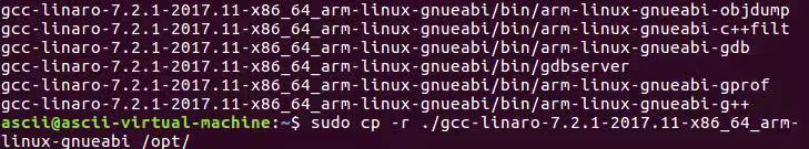 1 | sudo cp -r ./gcc-linaro-7.2.1-2017.11-x86_64_arm-linux-gnueabi /opt/ |