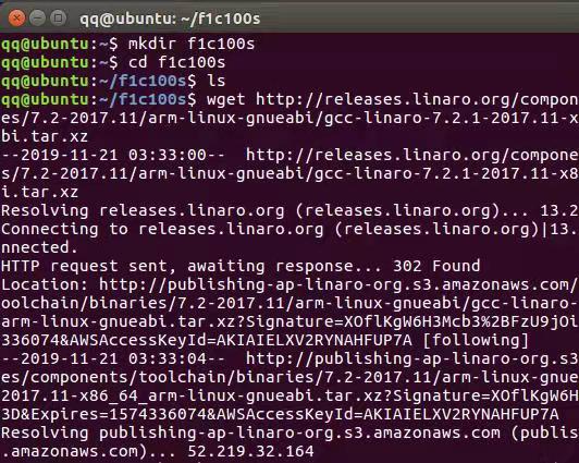 以上是先建立了一个f1c100s的目录,然后进入f1c100s。也可以省去此步骤、没有影响。