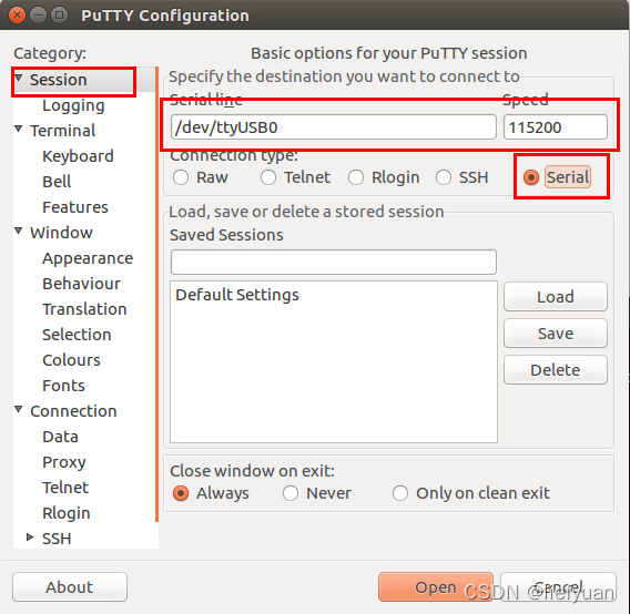 打开串口调试软件putty