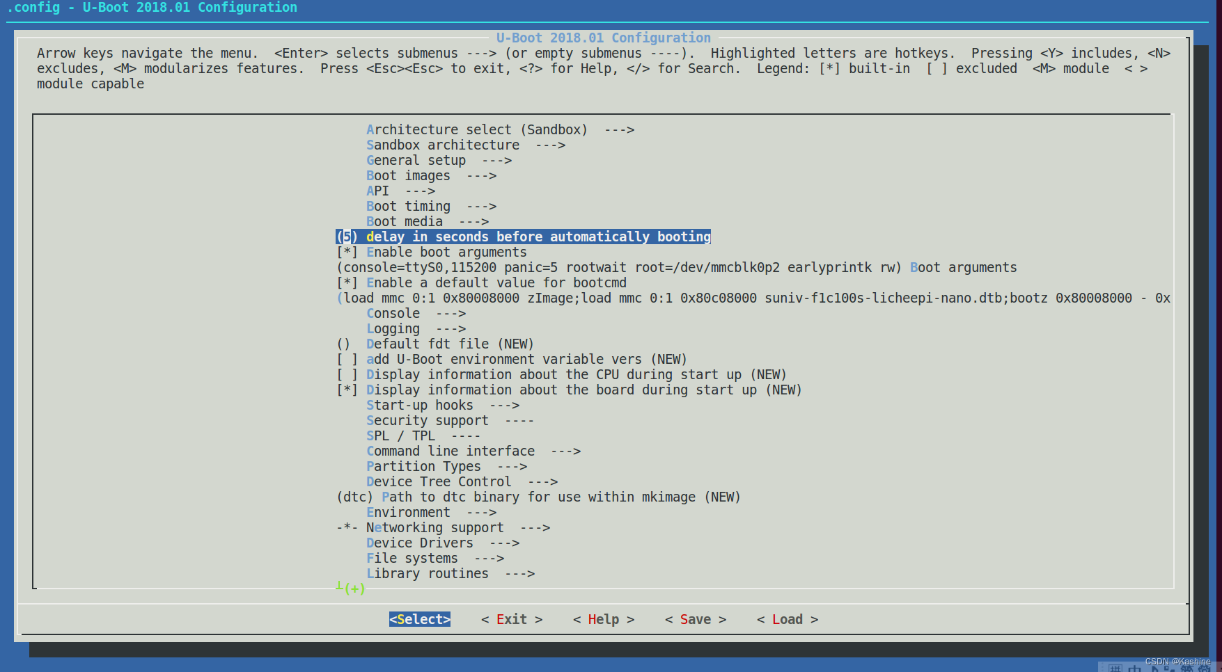 经过以上操作,默认配置文件licheepi_nano_deconfig 已经写入到,**/uboot/.config文件中,这是根据默认配置文件,生成的uboot的 最终配置文件**,这个配置文件记录了所有配置选项的宏开关,我们可以通过宏开关对其进行修改。