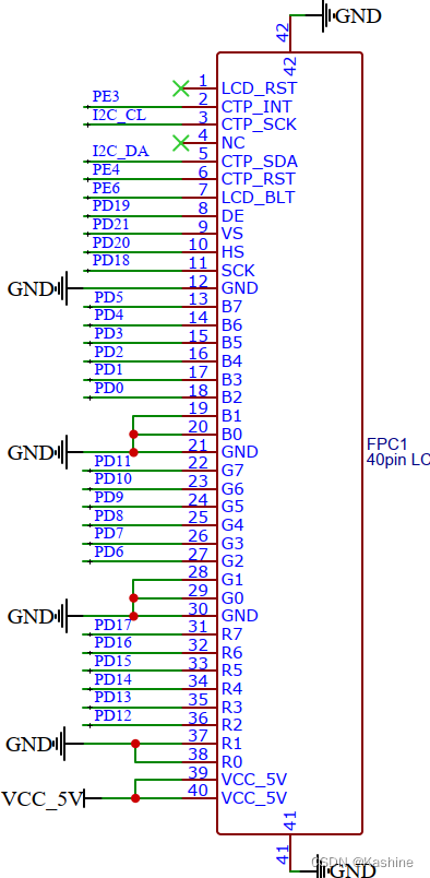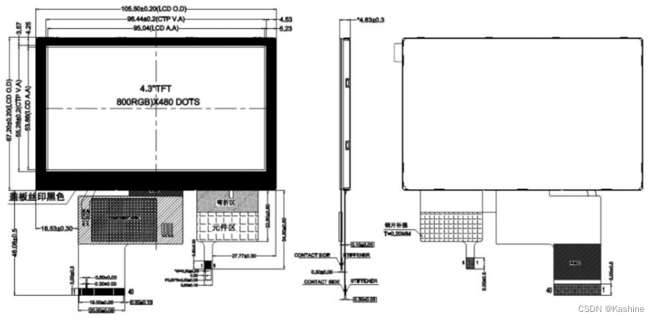 🍍 40Pin4.3寸屏幕 屏幕为4.3寸正点原子屏幕,采用FPC连接,接线端子管脚间距为0.5mm,由于我的焊接设备原因,焊接较为麻烦。