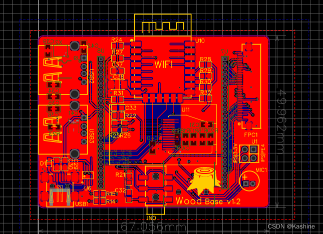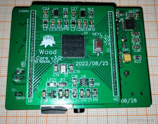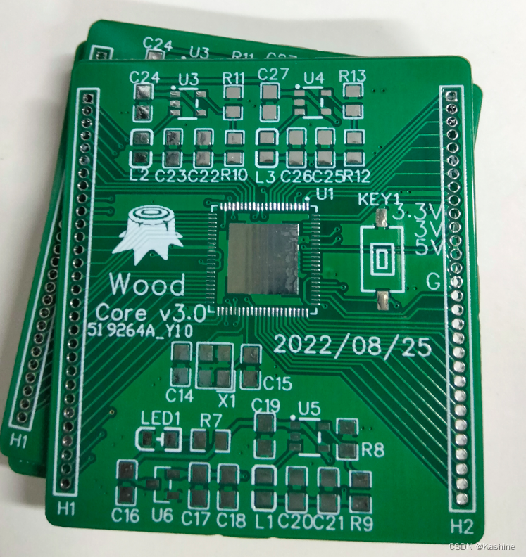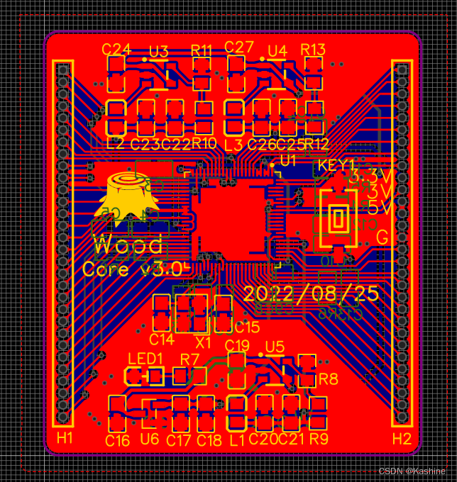 三、PCB展示 Wood是我做的标志,之所以选用排针连接底板和核心板,是因为排针相较于金手指和BTB来说,可以重复拔插,更便于将一个核心板应用到其他底板上。