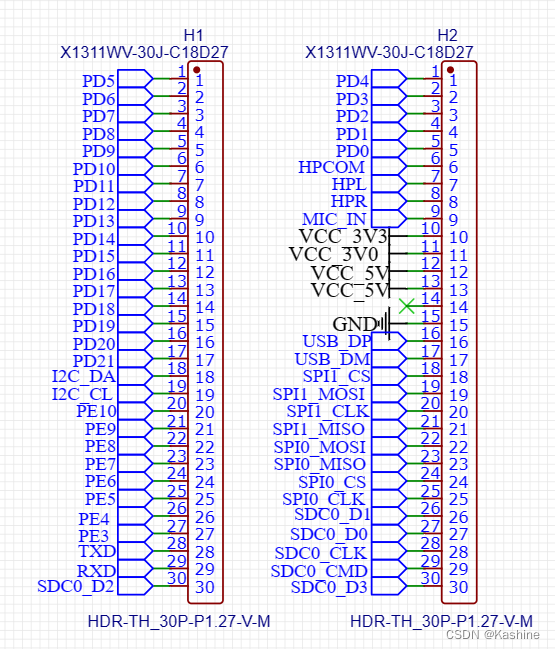 🍍 板对板连接器 和核心版的板对板连接器相对应,注意不要搞反了,否则可能导致短路,板对板连接器管脚分布和PCB布局有关,因为我未考虑到PCB布局,导致后面的布局较为困难,虽然核心板采用四层板,底板采用两层板,但布线还是花了很大功夫。