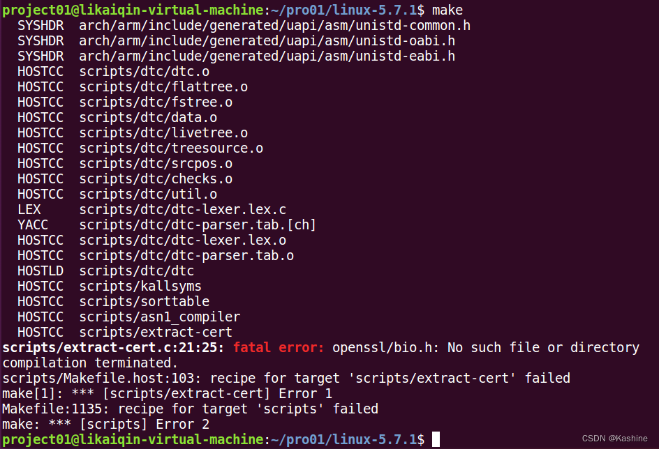 二、内核移植 1. 内核源码获取 下载Linux5.7.1源码 ,下载后完成后,将代码复制到Ubuntu新建的用户中并解压。