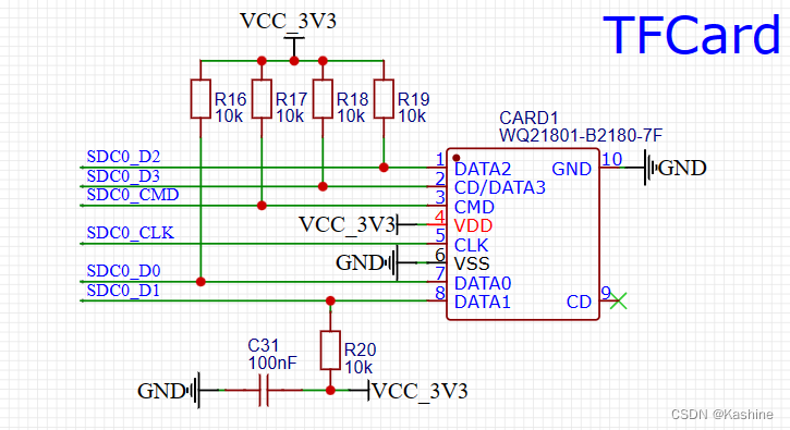 🍍 TF卡电路 TF卡作为本系统唯一的系统加载方式,具体接线方式如下所示,TF卡为自弹minTF卡,只要PCB和你的硬件匹配,其他全部相同。