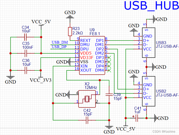 FE8.1(1扩4)是一个非常紧凑的高速4端口USB集线器控制器。此处我们仅使用其中两个,也就是将一个USB扩展为两个。