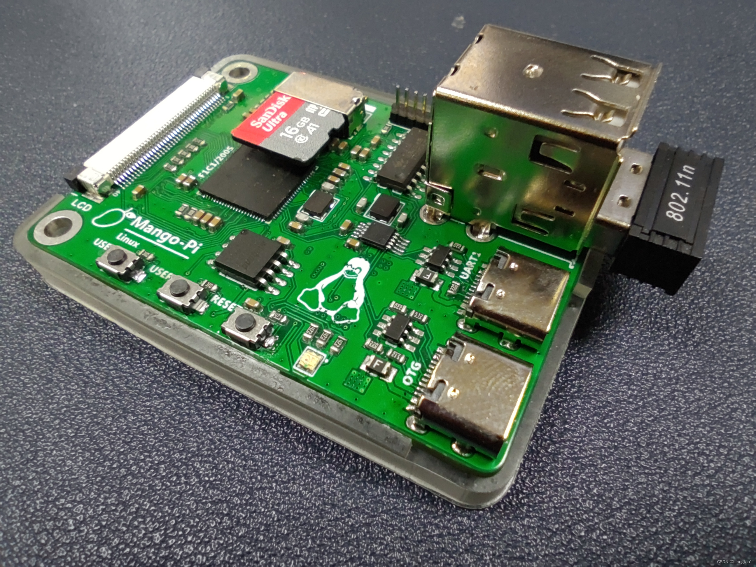 开发板如图所示,模仿树莓派取了一个mango-pi的名字,haha~。