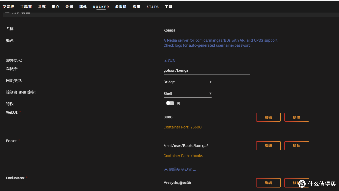 漫画的体积比图书类的多很多,直接存进手机太占空间了,这次就本着allinboom的想法,再把生活中日常消遣的漫画也纳入进来,智能手机的年代,必须要有手机端,才能随时随地访问。也有其他的一些办法,例如nextcloud,但是这种非unraid文件原有目录的我并不喜欢;为什么总是喜欢好几个容器一起放文章里,主打一个功能一个目录,不用东找西找。