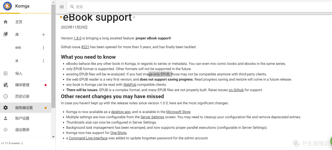 说在前面,2023年11月29日,komga发布对电子书的支持公告,将来只支持EPUB格式,哎,我的一堆mobi啊。